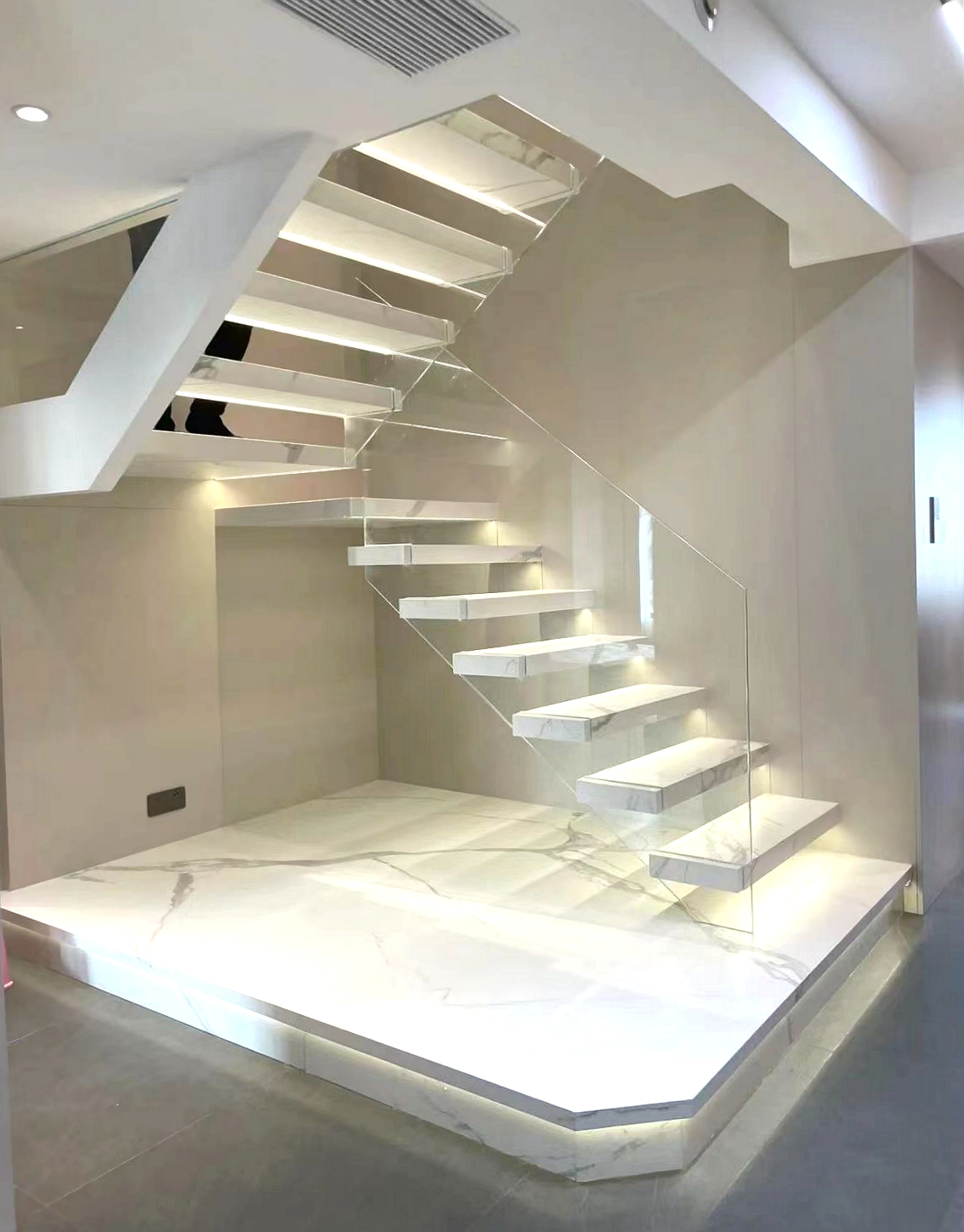 الصفحة الرئيسية> قائمة المنتجات> الدرج> السلالم العائمة> MS2025 درج عائم من الرخام الأبيض ذو الطراز الحديث الفاخر